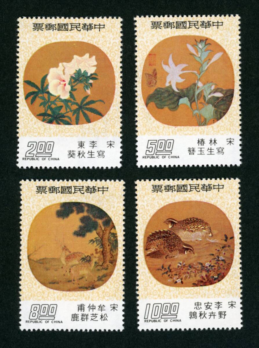 23997◆台湾1976◆故宮名画〈扇(うちわ)画'76年版〉4種完★極美品拍卖