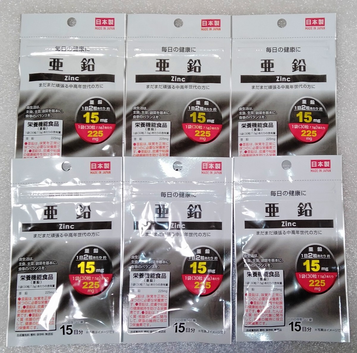- 亜鉛 Zinc【合計120日分6袋】1日1錠 まだまだ頑張る中高年世代の方に 栄養機能食品 日本製 サプリメント
