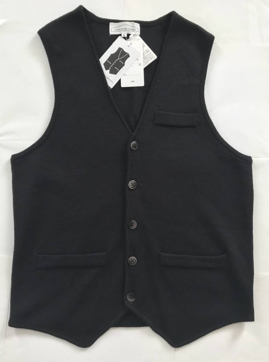 > 新品 6,589円★ベスト ニットジレ★高品質ジム★PRODUCT BY GIM★LIFE &WORK DESIGN★洗える ニット★黒色 フェイクポケット 洗濯可★sizeS