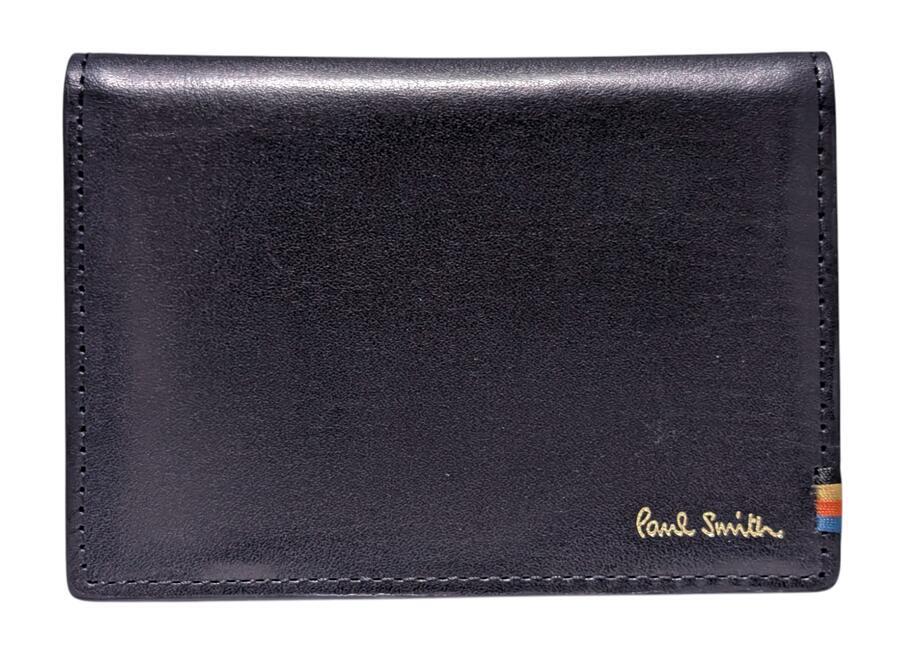 - 未使用 ポールスミス カードケース 二つ折り PSC831 濃紺 ダークネイビー ストライプステッチ 本革 定期入れ 【中古】