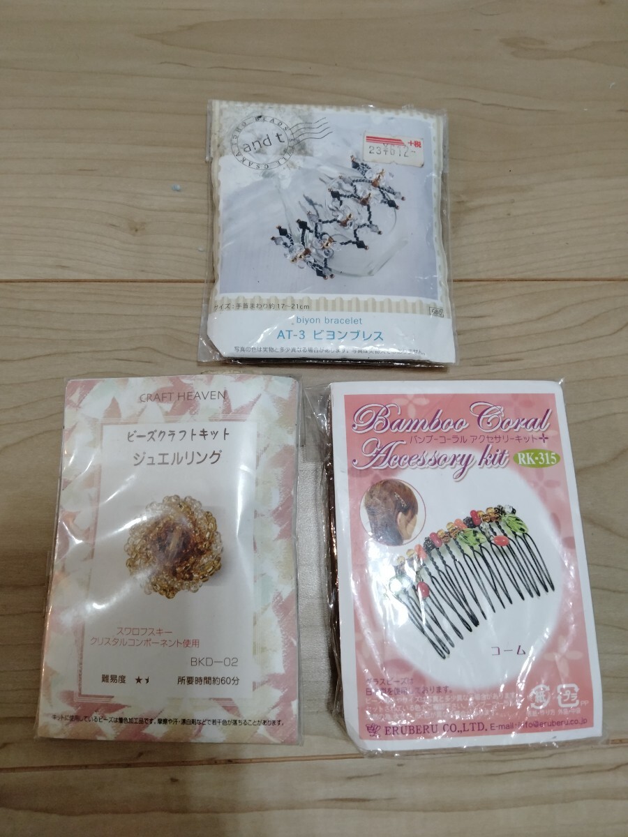 - ビーズアクセサリーキット★ビーズクラフトキット★ジュエルリング、ビヨンブレス、コーム 3点セット 【ジャンク品】