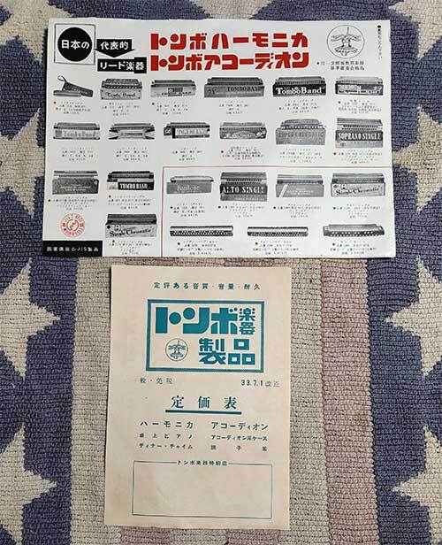 > カタログ トンボ ハーモニカ アコーディオン トンボ楽器 パンフ 定価表付 価格表 パンフレット チラシ 昭和33年 貴重