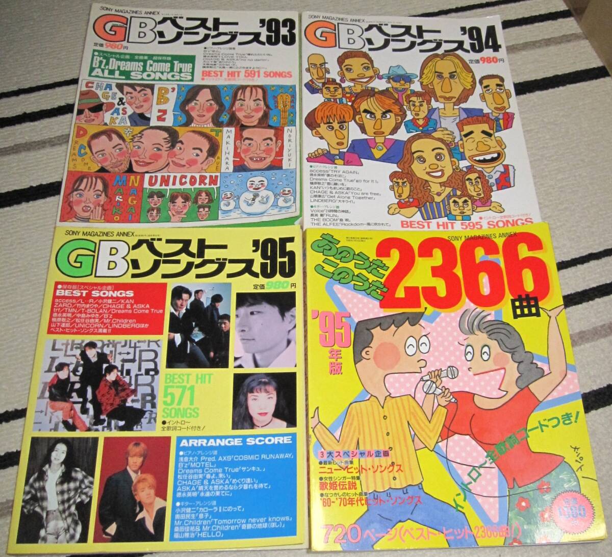 - 超貴重!歌本(93~95年版)4冊セット!GBベストソングス &あの歌この歌2366曲!ギターコード付!ギターブック・楽譜・ピアノ・ビーズ他