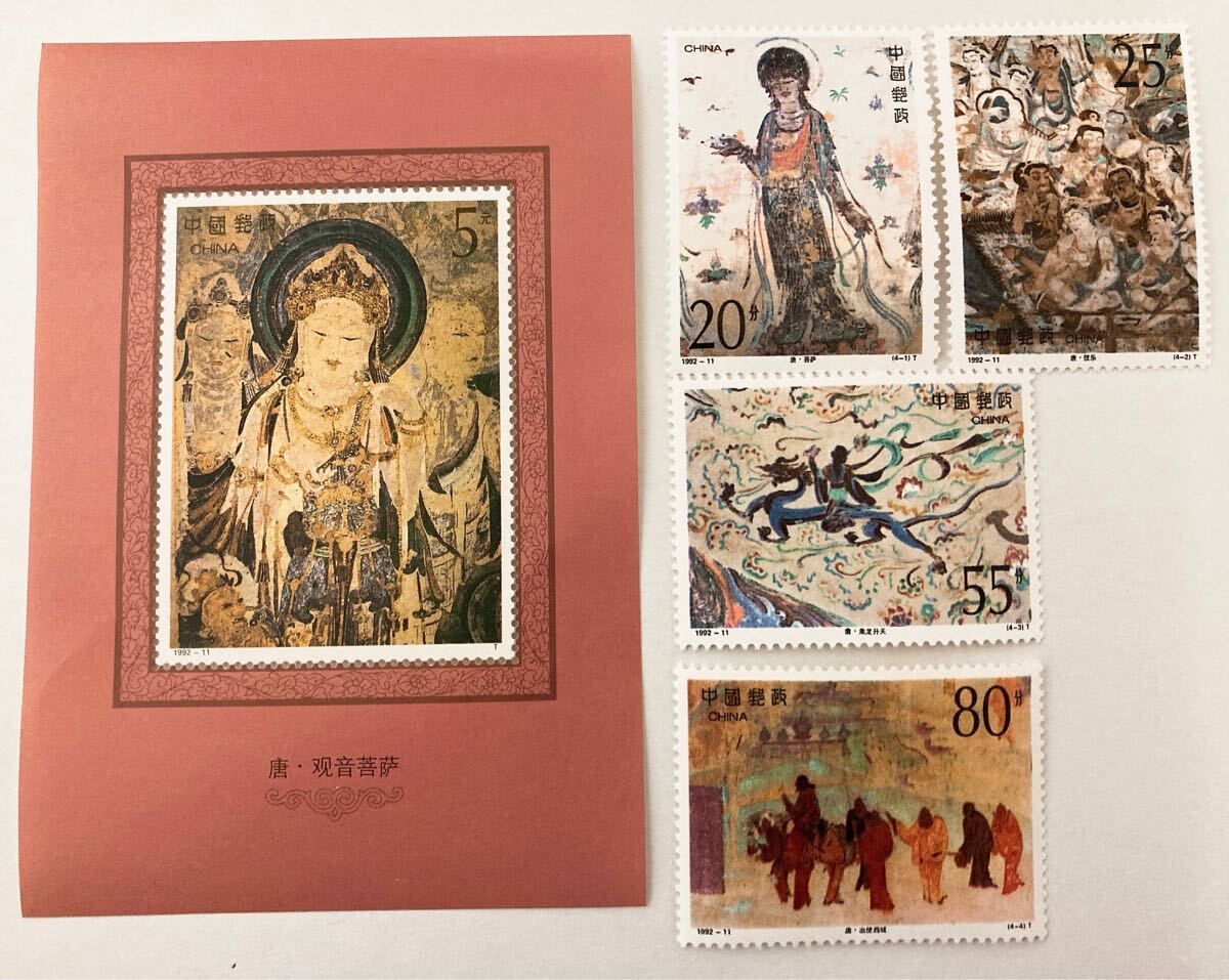 - 中国切手 敦煌の壁画4次 バラ4種完 小型シート 未使用