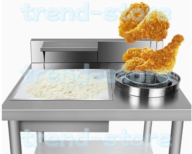 - フライドチキンパン粉ステーション、コンテナとバスケット付きの業務用ステンレス鋼パン粉テーブル、チキン、魚、牛肉、揚げ物用の取り外し