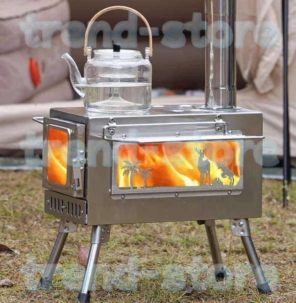 - 薪 ストーブ アウトドア 調理器具 暖炉 キャンプ 折りたたみ 煙突付き 耐熱ガラス窓付き 組立式 屋外 焚き火台 BBQ 暖房 コンロ ステンレス