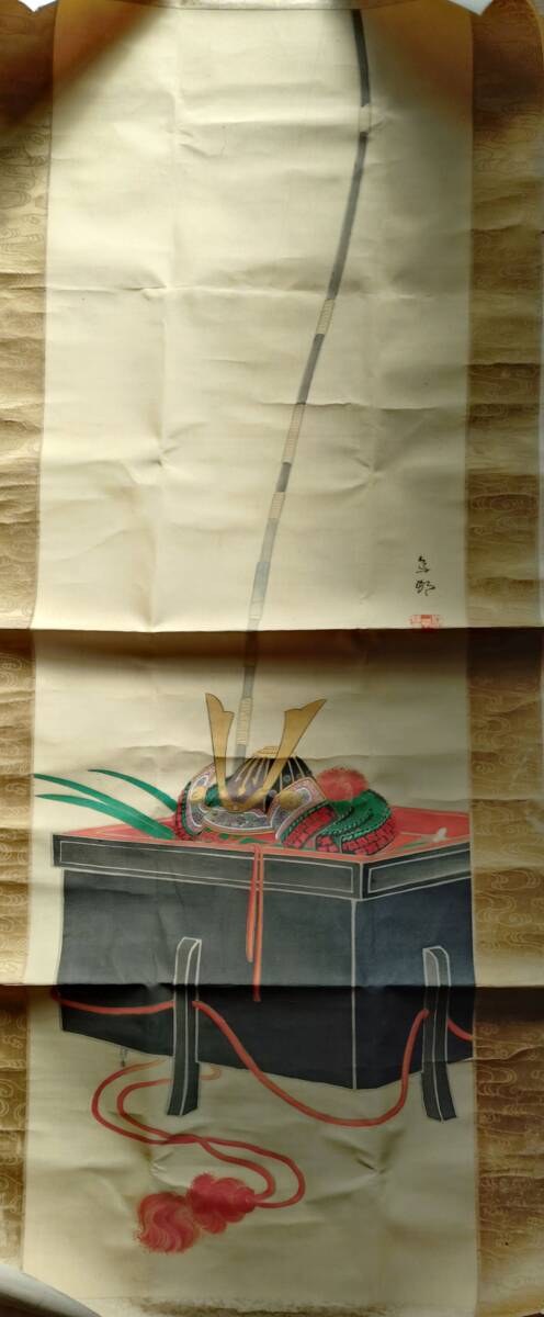 - f25010802〇絹本 直筆 彩色画 兜 昭和時代〇和本古書古文書