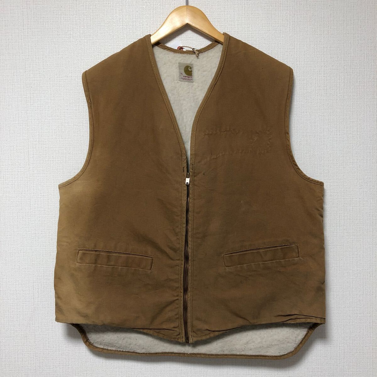 - (k) 70s 70年代 Carhartt カーハート 内ボア ベスト USA製 プリントタグ SCOVILL サイズXL ベージュ ブラウン 茶 メンズ