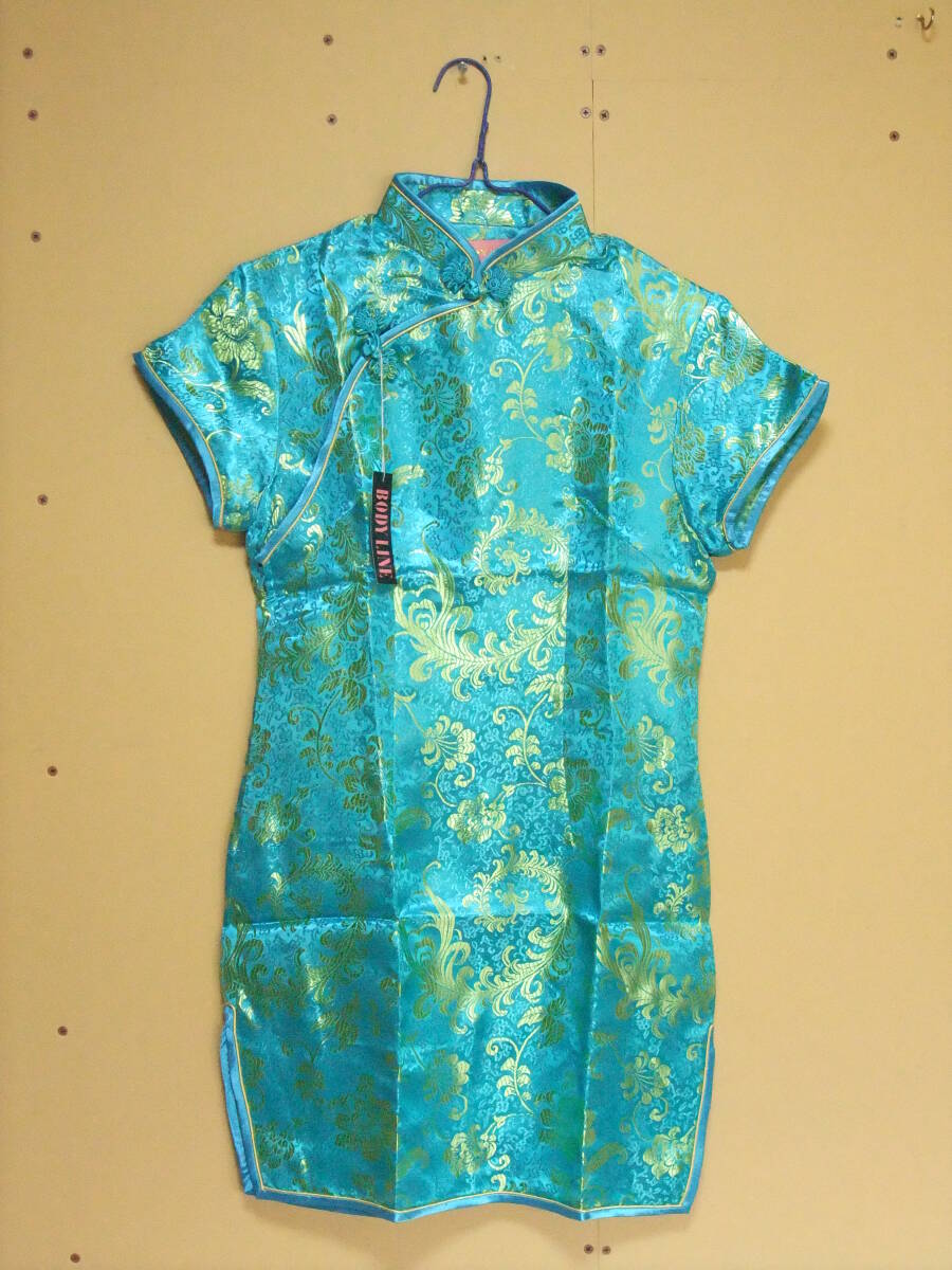 - ★コスプレ衣装★BODY LINE/チャイナドレス/36/ミニスカ/水色/花柄/半袖/光沢/未使用
