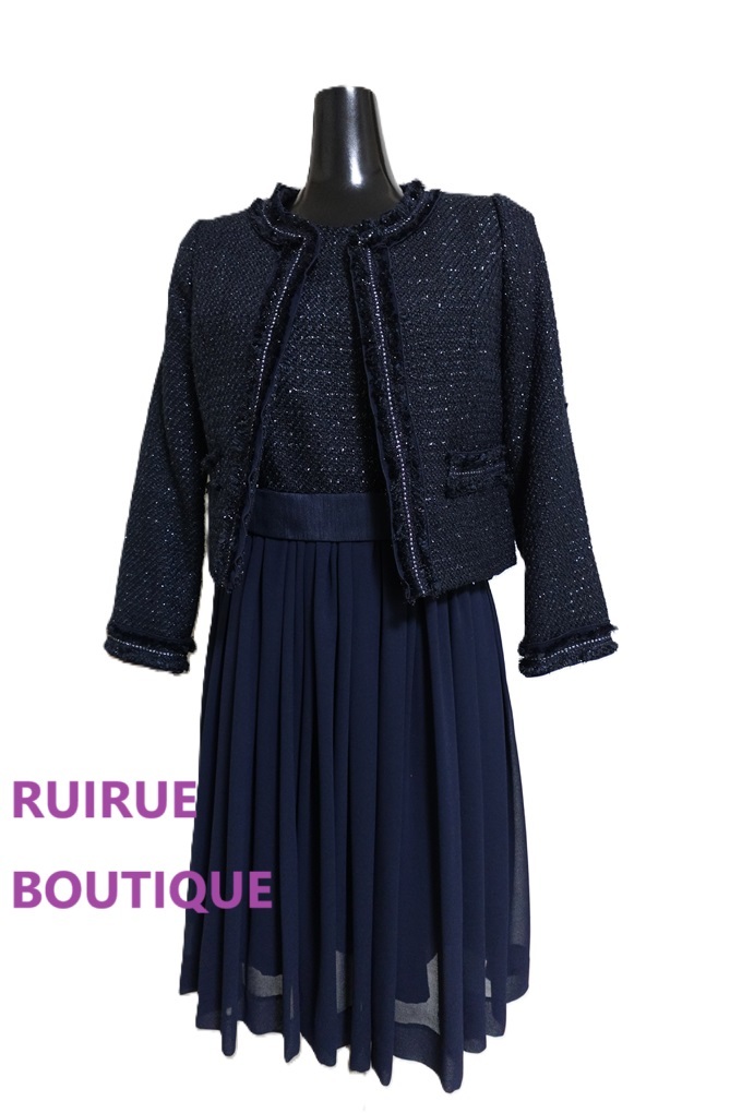 - クリーニング済☆RUIRUE BOUTIQUE ルイルエブティック ツィード スカートスーツ S