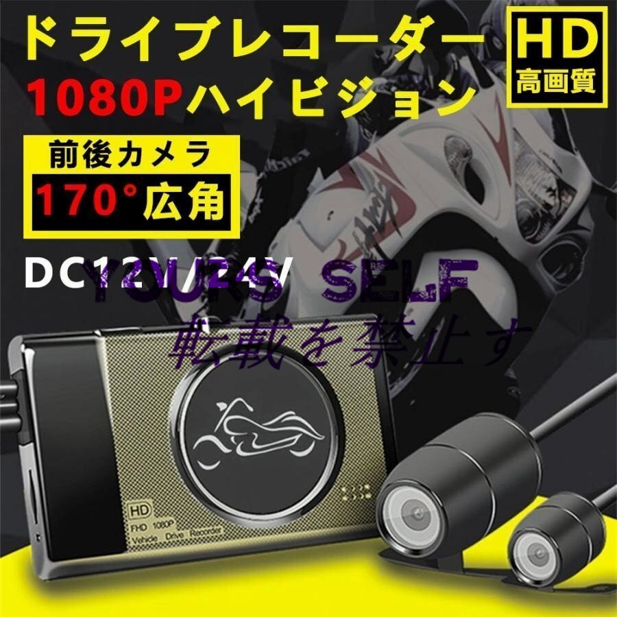 > バイク用 ドライブレコーダー 前後 カメラ 3インチ HD 1080P 高画質 170度広角 500万画素 IP67 防水 Gセンサー 常時 衝撃録画 360度 撮影
