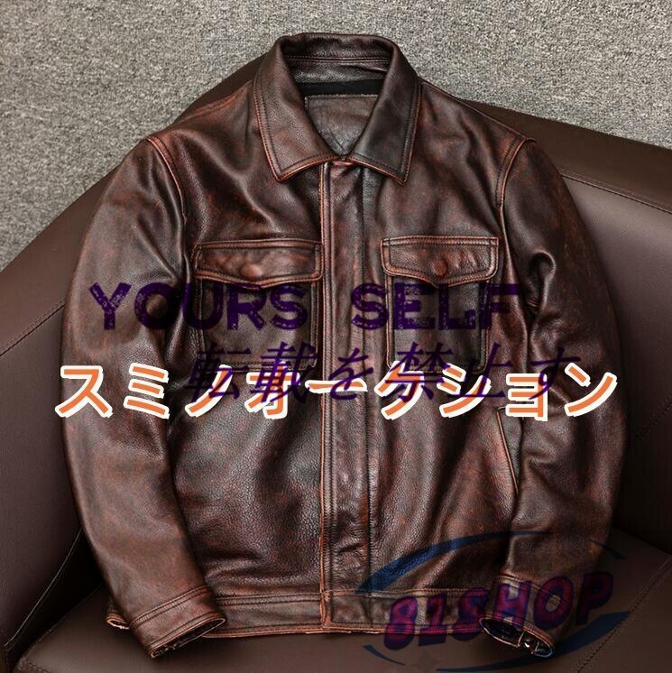 - 稀少新品■レザージャケット 上品 ユーズド加工 本革 牛革 高級 ライダースジャケット 革ジャン S~6XL
