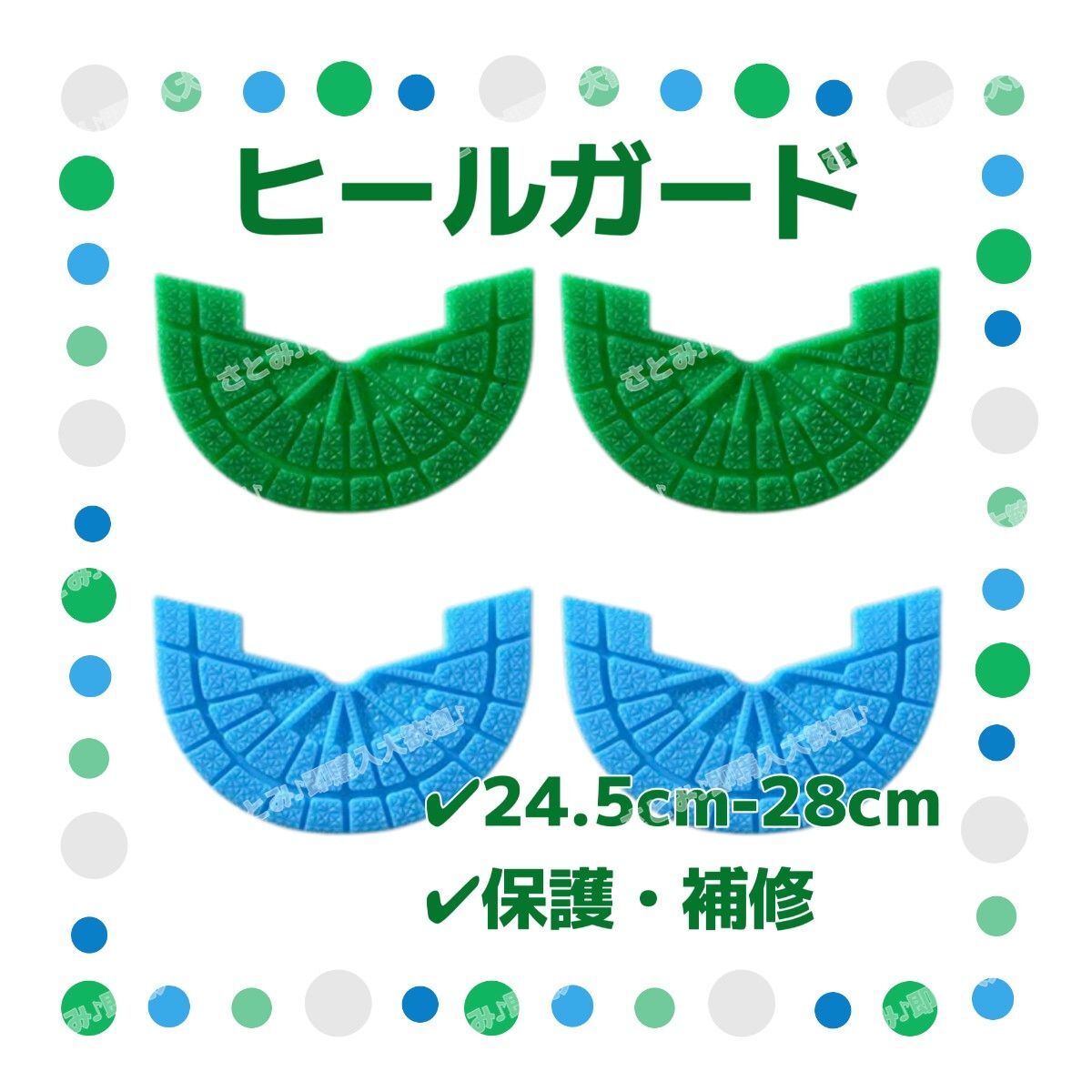 - ヒールガード 4枚セット 2足分 ソールガード スニーカー プロテクター 保護 補修 24.5cm-28cm グリーン 水色
