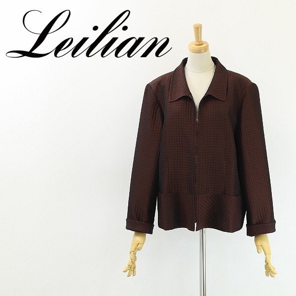 > ◆Leilian レリアン Alta Moda イタリア製生地 ジップ ジャケット ダークブラウン 17+ 大きいサイズ