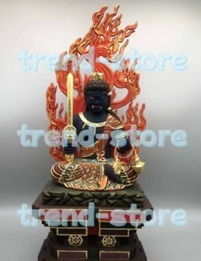 - 珍品 高31cm 不動明王 仏像 座像 桧材製 極彩色 仏教工芸品 人気の仏像 仏師手仕上げ品