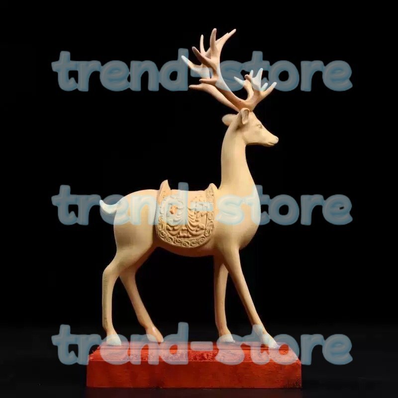 - 木彫り エゾシカ 鹿 天然木製(柘植ツゲ)彫像 木製彫刻 置物 招財 開運 金運祈願 開運 パワーストーン お礼 新年 贈り物