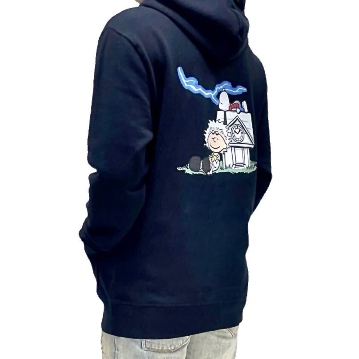 - 新品 バックトゥザフューチャー チャーリーブラウン ドク スヌーピー マーティ 時計台 昼寝 バックプリントパーカー ユニセックス Lサイズ