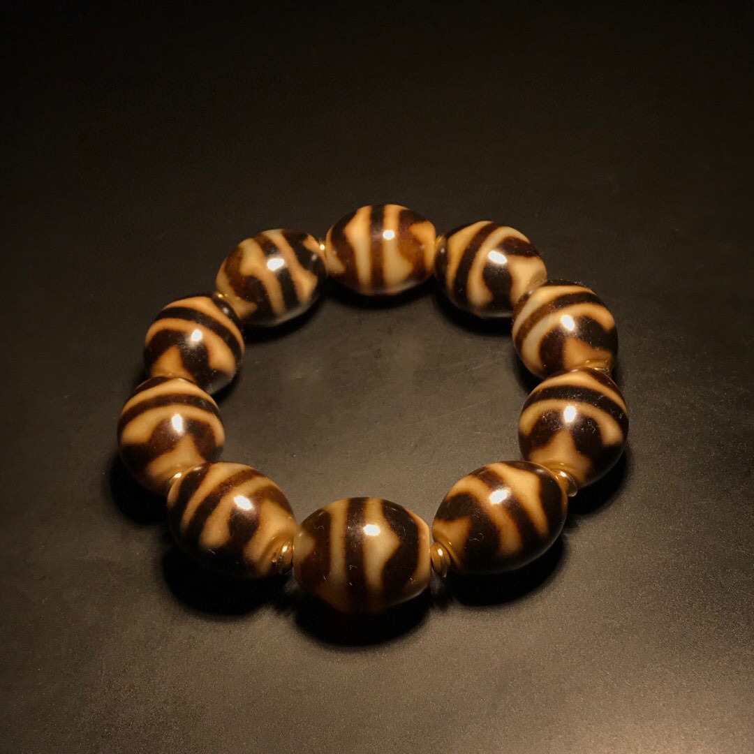 - 【超珍館蔵】瑪瑙製 細密彫 達洛雙虎牙天珠手串 置物 古賞物 古美術品 稀少珍蔵品