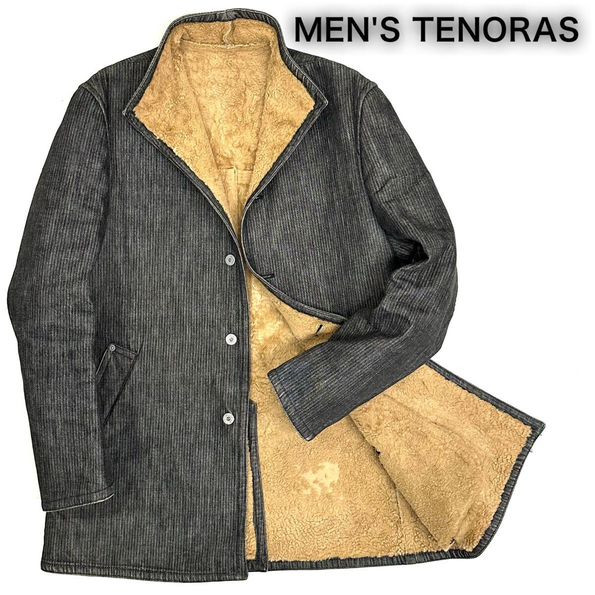 > MENS TENORAS メンズティノラス ストライプ デニム パイルファー コート(L)グレー系 メンズ アウター 当時物 vintage