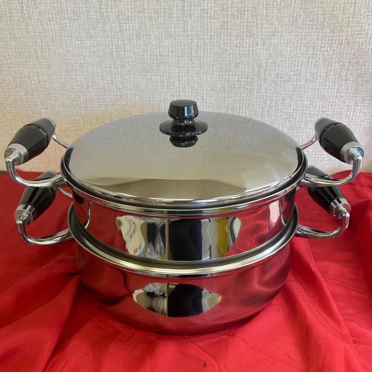 - 両手鍋 鍋 調理器具 蒸し器 ニューソルジェ 二段蒸し器鍋 27cm とーわや 11309