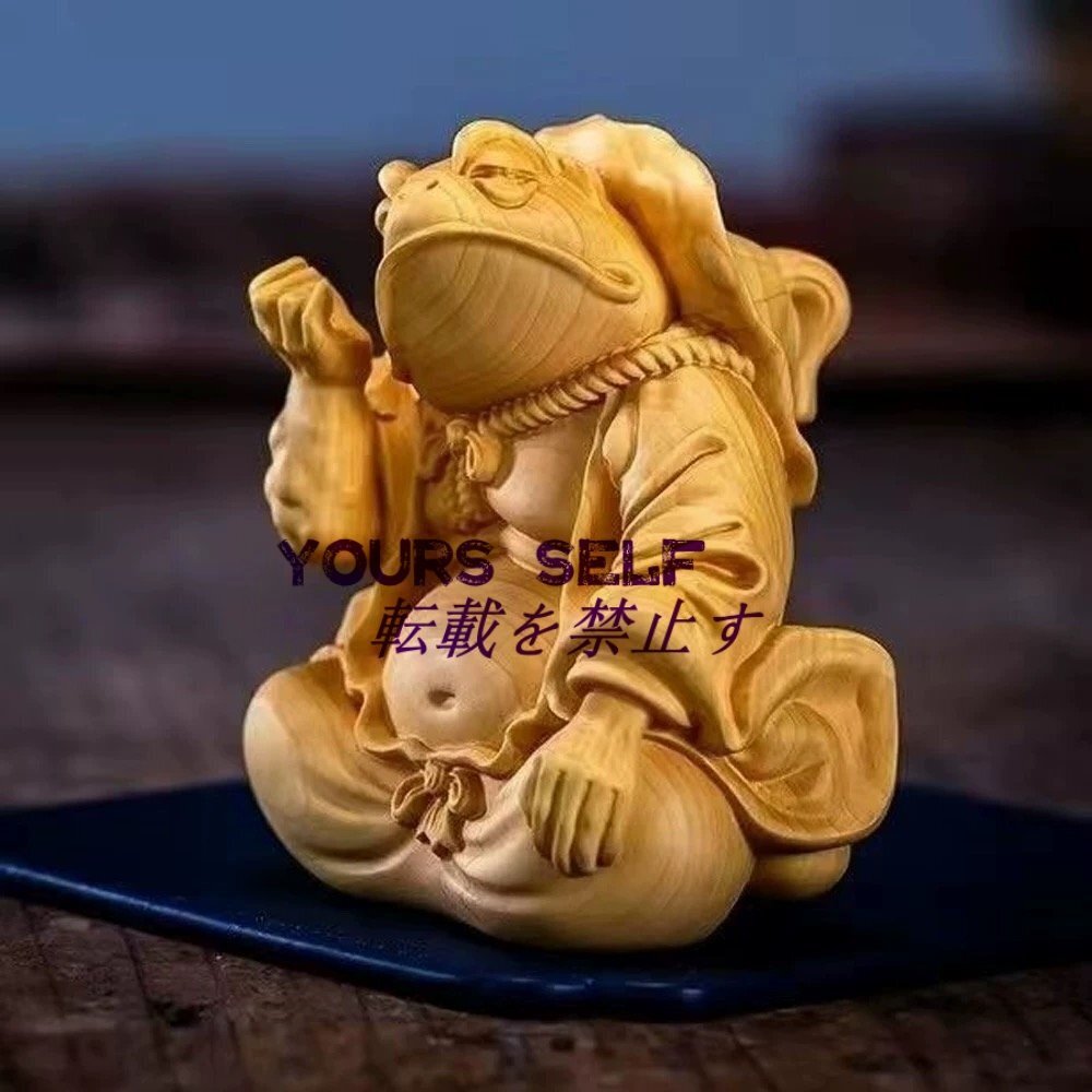 - 木彫 幸福を祈るカエル 彫刻 飾り置物 精密細工 美術工芸品