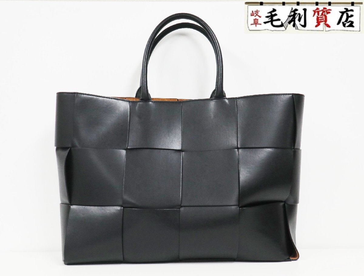 > ボッテガ ヴェネタ BOTTEGA VENETA トートバッグ マキシイントレチャート アルコ ラージ カーフレザー 608608 黒 美品 バッグ