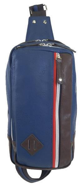 - 新品●シックなバイカラー合皮ボディバッグ/紺■フェイクレザー
