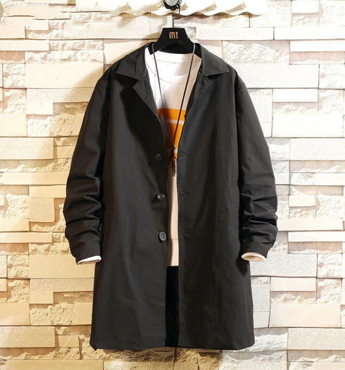 - ステンカラーコート カジュアルコート メンズ 無地 ミドル丈コート 薄手 トレンチコート スプリングコート Zwc0118 M ブラック