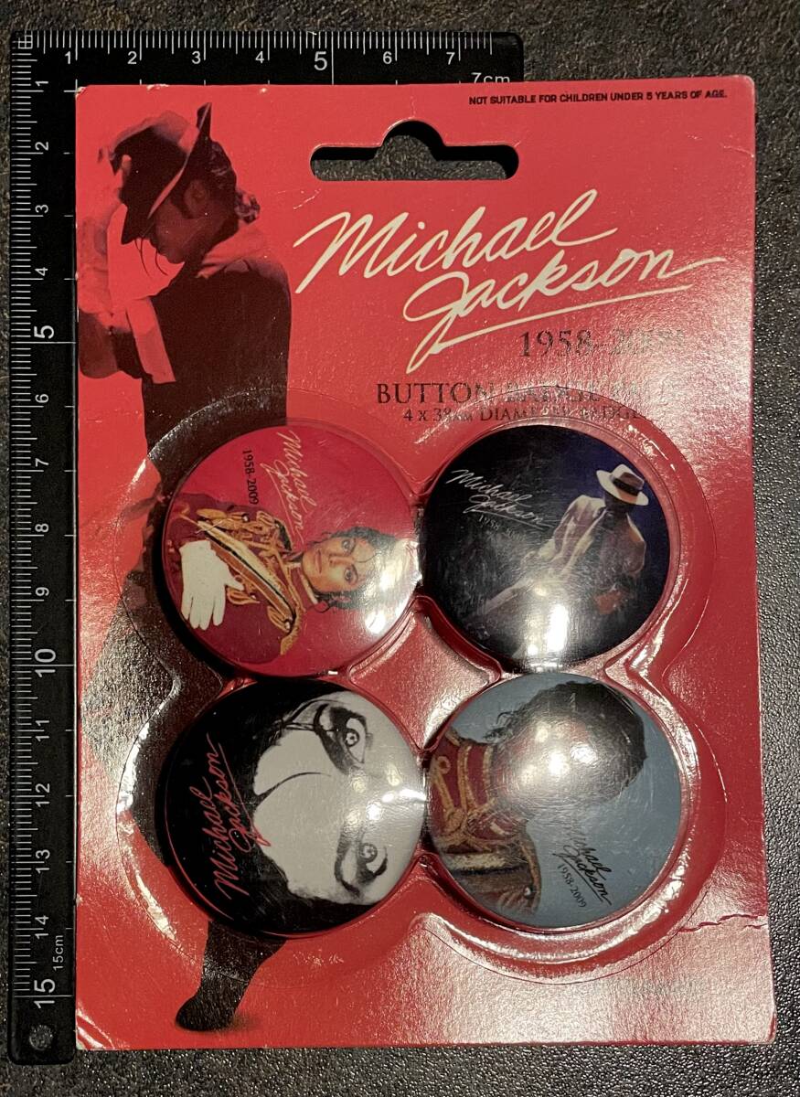 > 2009年オフィシャル未開封デッドストック00sオールドMichael Jacksonバッジ×4セットREDマイケルジャクソン新品2000s00年代y2kビンテージt