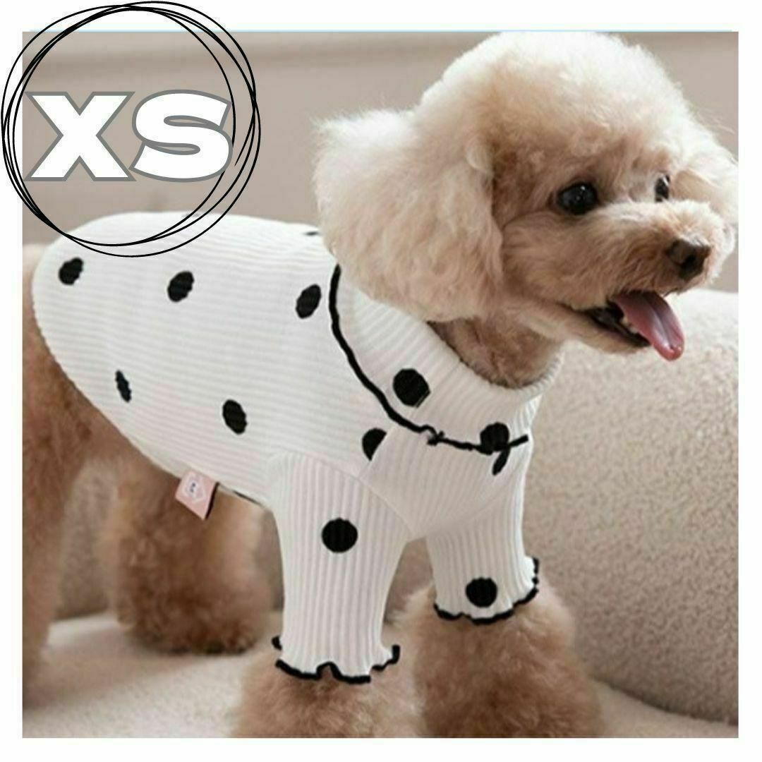 > ドッグウェア 犬服 犬 小型犬 ハイネック 水玉 かわいい 袖口 ふりふり XS 白 ホワイト