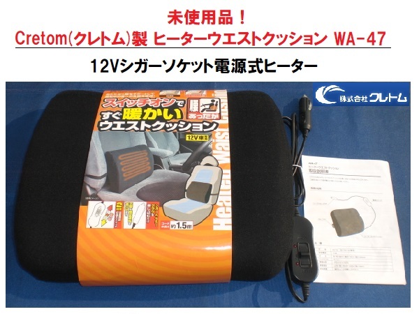 > Cretom(クレトム)製 ヒータ-ウエストクッション WA-47 12Vシガーソケット シートヒーター 2段調整スイッチ 運転姿勢 腰の負担を軽減 腰痛
