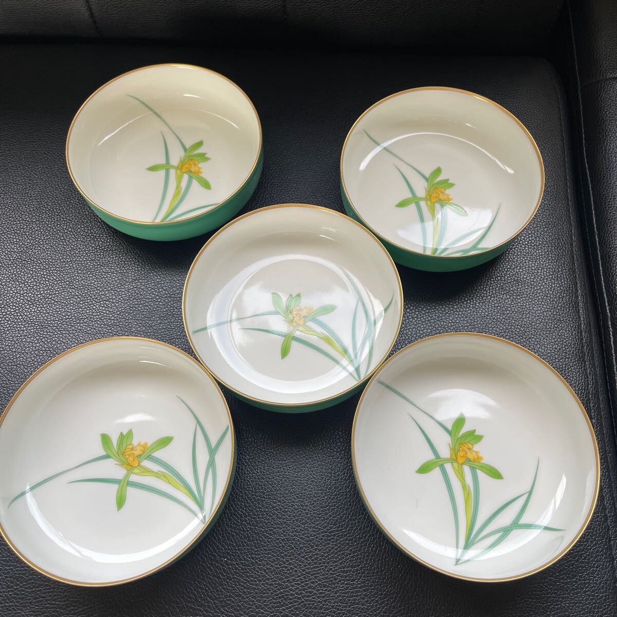 - 香蘭社 小鉢揃 浅鉢 グリーン 金彩 5客セット