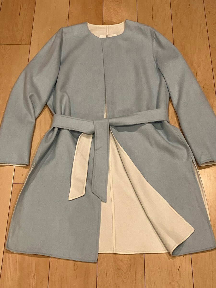 - 美品 MaxMara マックスマーラ クチートアマーノ ベルテッドコート 46 ライトブルー