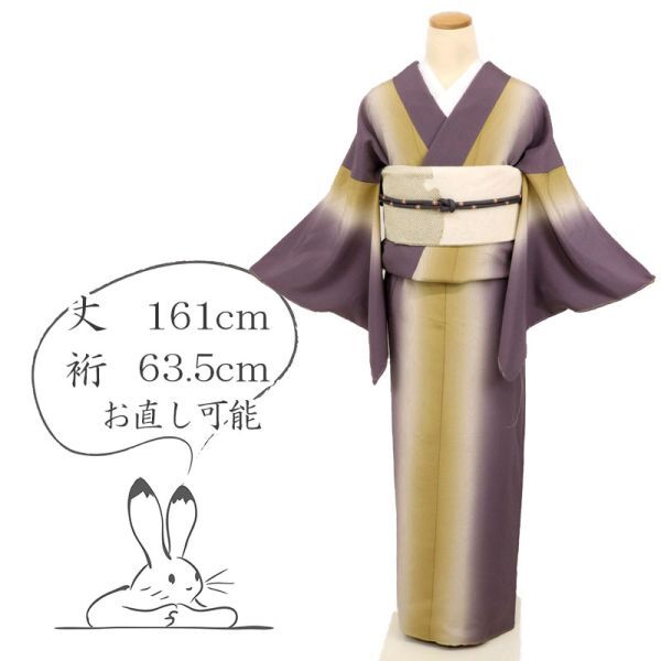 > 【小紋】 特選 しっとり縦筋ラインぼかし 滅紫×桑茶色 袷正絹着物 KP12-5