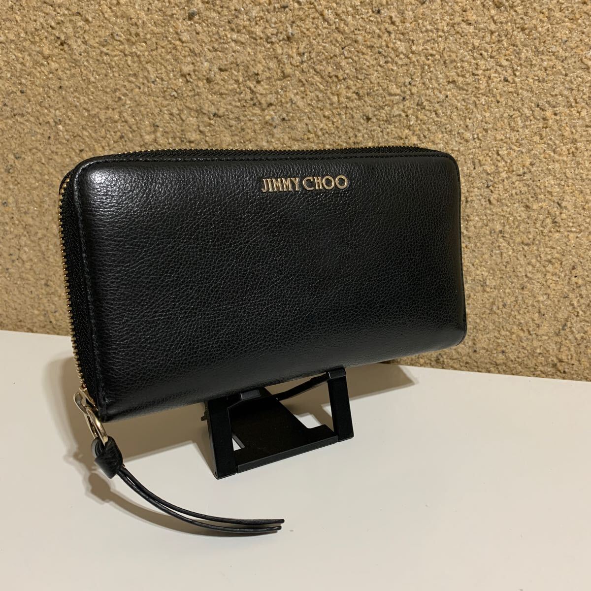 > 現行モデル 美品 JIMMY CHOO ジミーチュウ ジッピーウォレット ラウンドファスナー 長財布 ゴールド金具 ブラック系