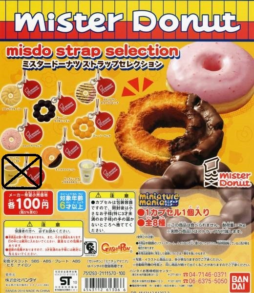 > ★Mister Donut ミスタードーナツ・ミスド ストラップ セレクション…7種 (リッチシェイクバニラ/他) ミニチュアフード/食品フィギュア