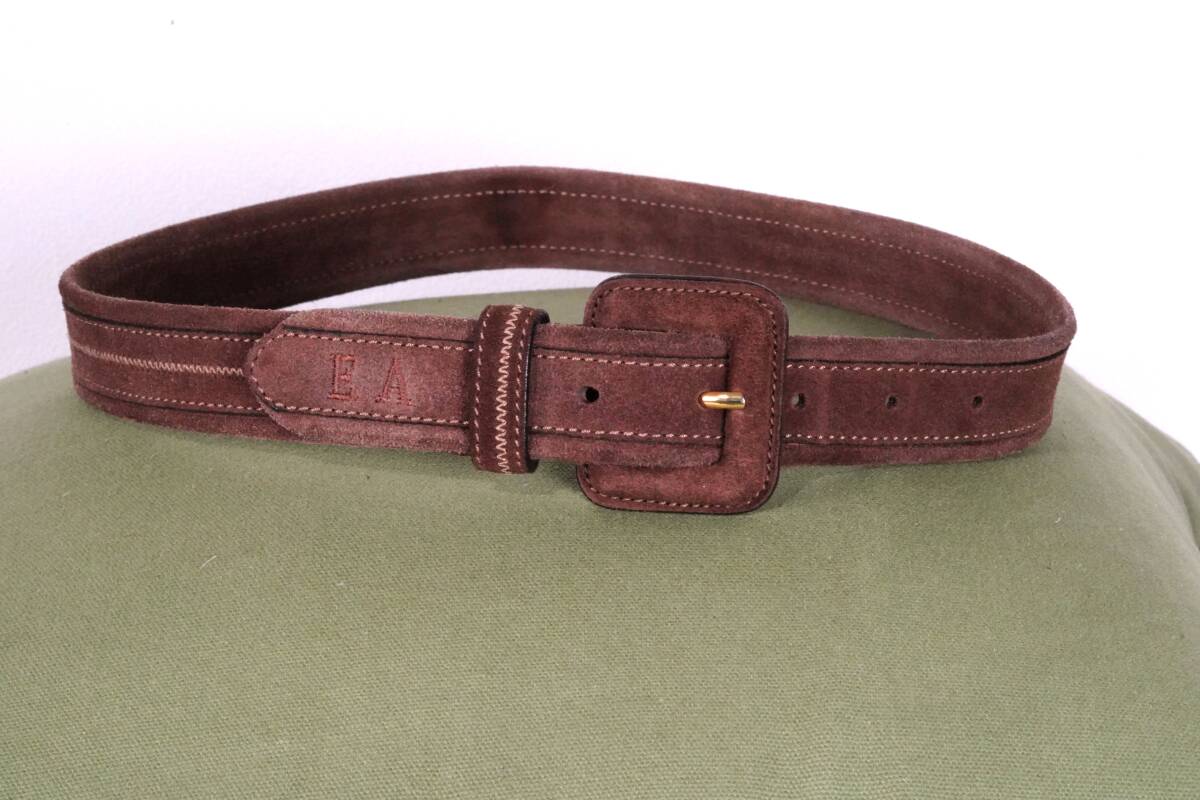 - EA 刺繍 良質本革 スエード ベルト 高級感 美品 レザー ステッチ多数 30㎜ 革厚