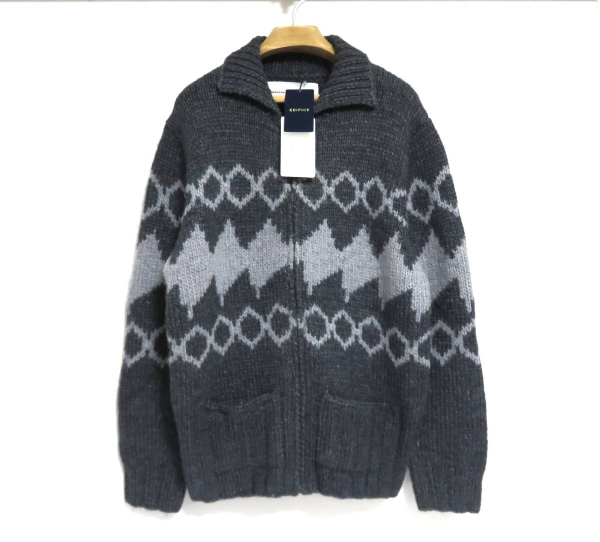 - 定価5.5万 新品 walenode × EDIFICE アルパカ混 ハンドニット カウチン セーター 1 グレー ウェルノード ジップアップ カーディガン