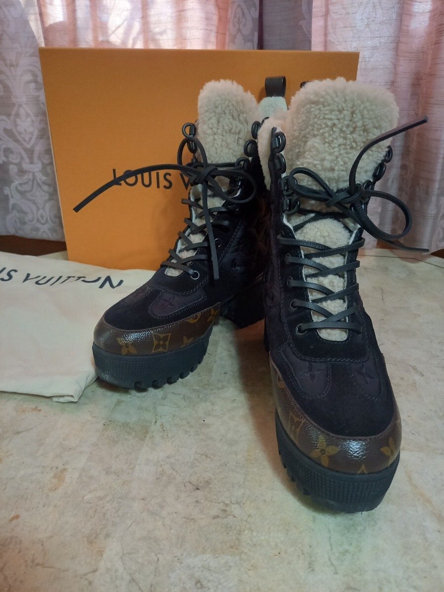 - LOUIS VUITTON ルイヴィトン ブーツ ローリエート・ライン アンクルブーツ スエード ブーツ ブラック系サイズ 38 レディース LV モノグラム