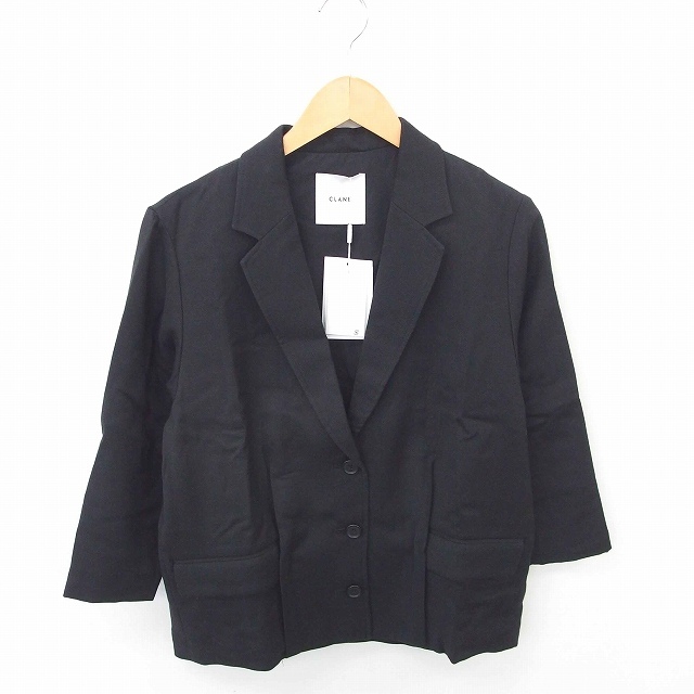 > 未使用品 クラネ CLANE タグ付き テーラード ジャケット アウター 総裏地 ウール混 七分袖 36 黒 ブラック /TT レディース