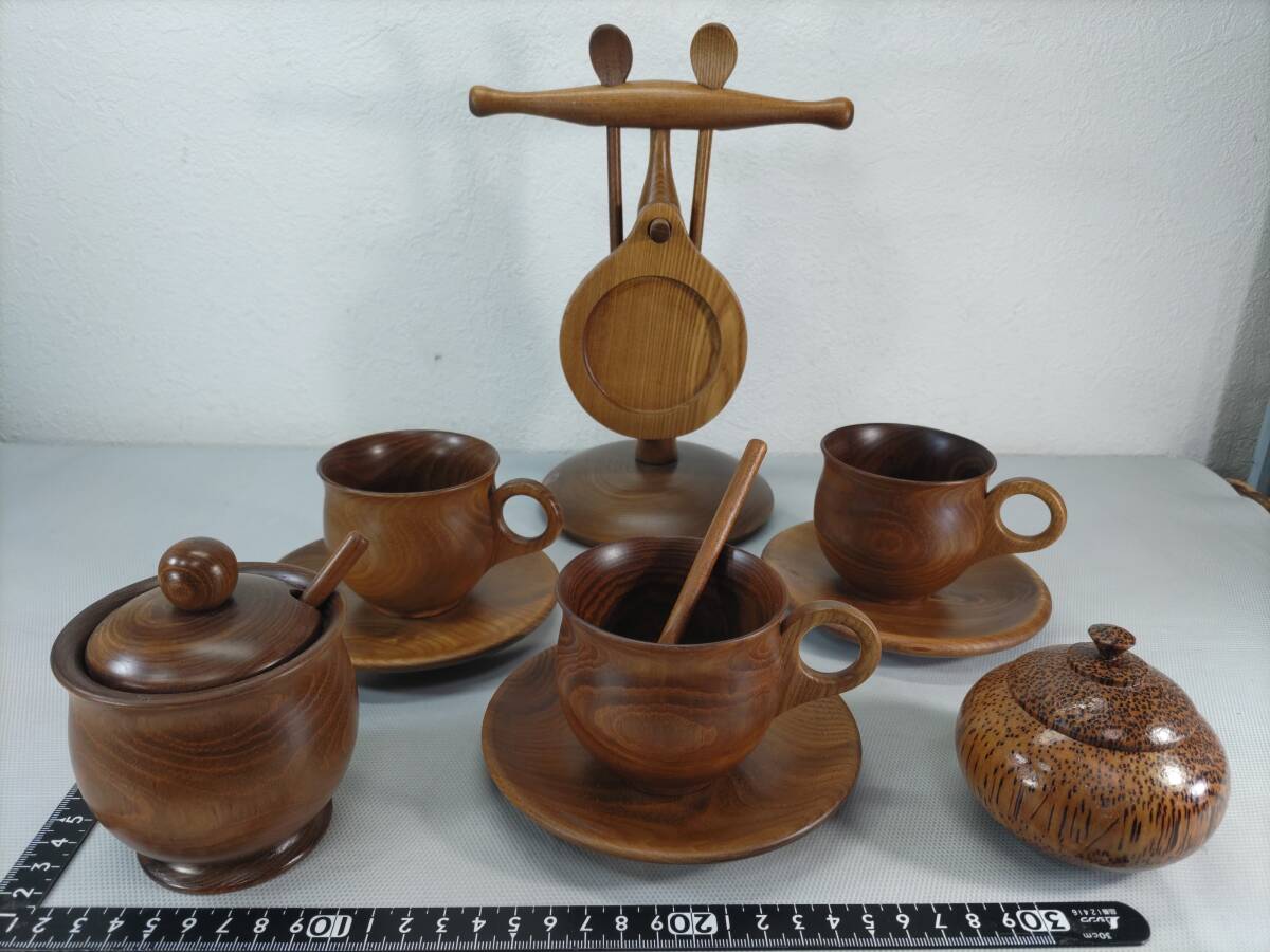 - ■送料無料!■まとめて■カップ&ソーサー■シュガーポット■木製■銘木■天然木■銘木・エンジュ■大量セット(A4)!