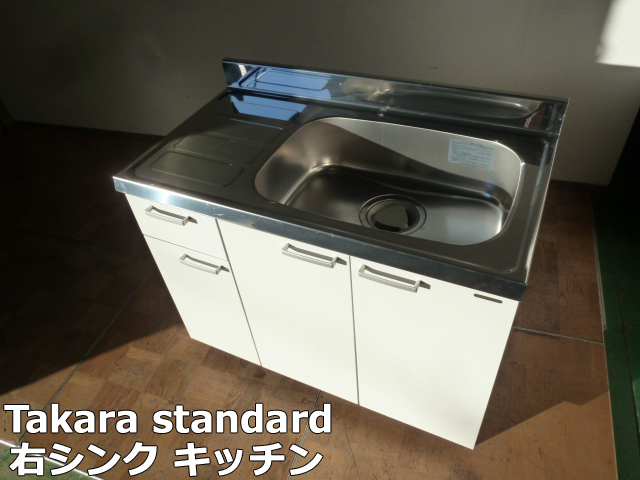 > 【中古】タカラスタンダード 木製キッチン 流し台 右シンク (1) 間口100cm キャビネット 収納 台所 ステンレスシンク