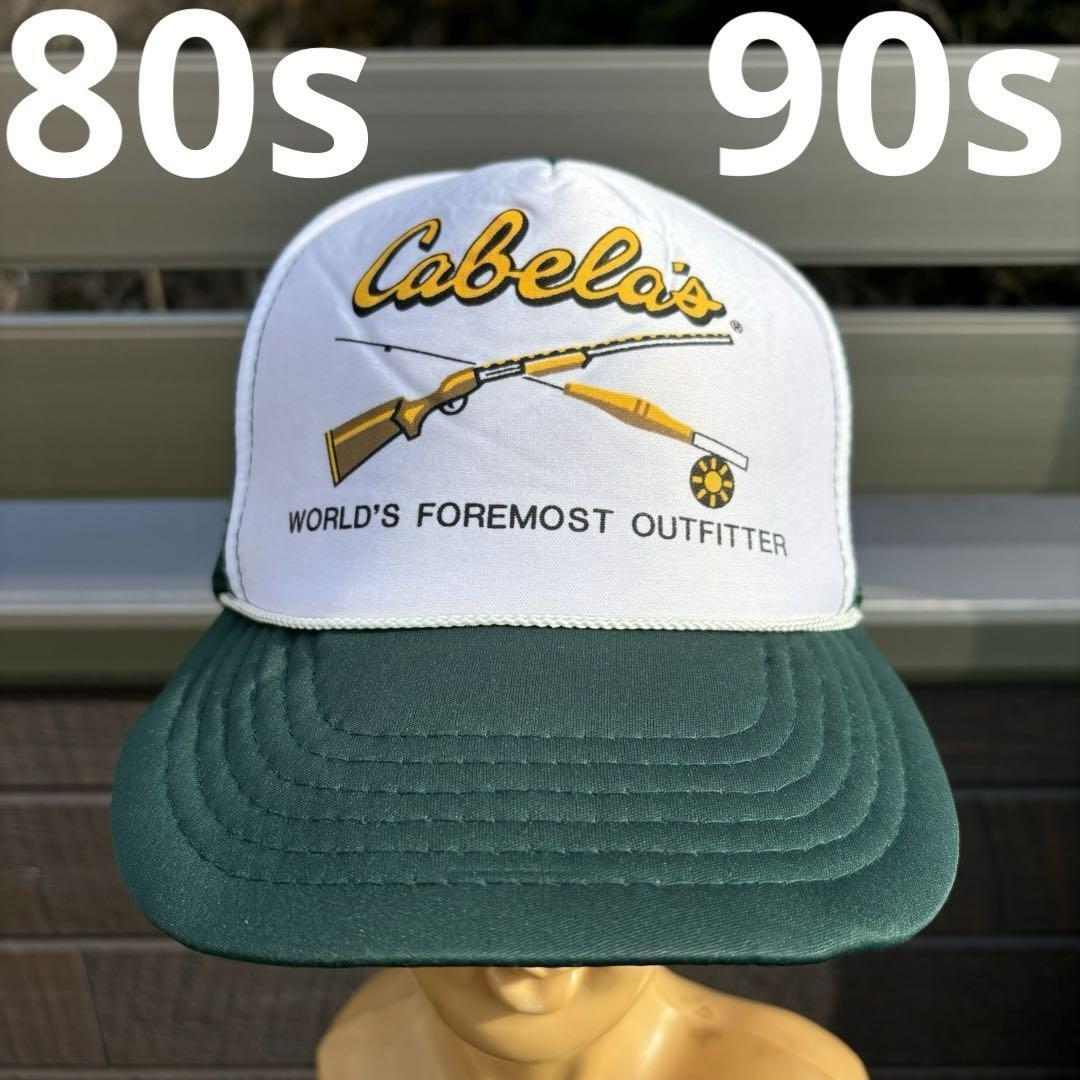 - 80s 90s 台湾製 緑 紐付 Cabelas カベラス キャップ 帽子 アウトドア キャンプ ハンティング フィッシング 釣り アメリカ 古着 ビンテージ