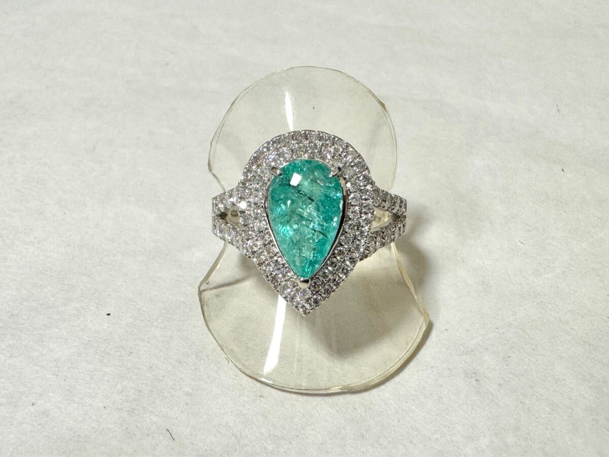 > 【質屋 尾張屋商店 東京】 ☆鑑別結果付☆ Pt900 パライバトルマリン ダイヤ レディースリング アクセサリー 青緑石 2.56ct