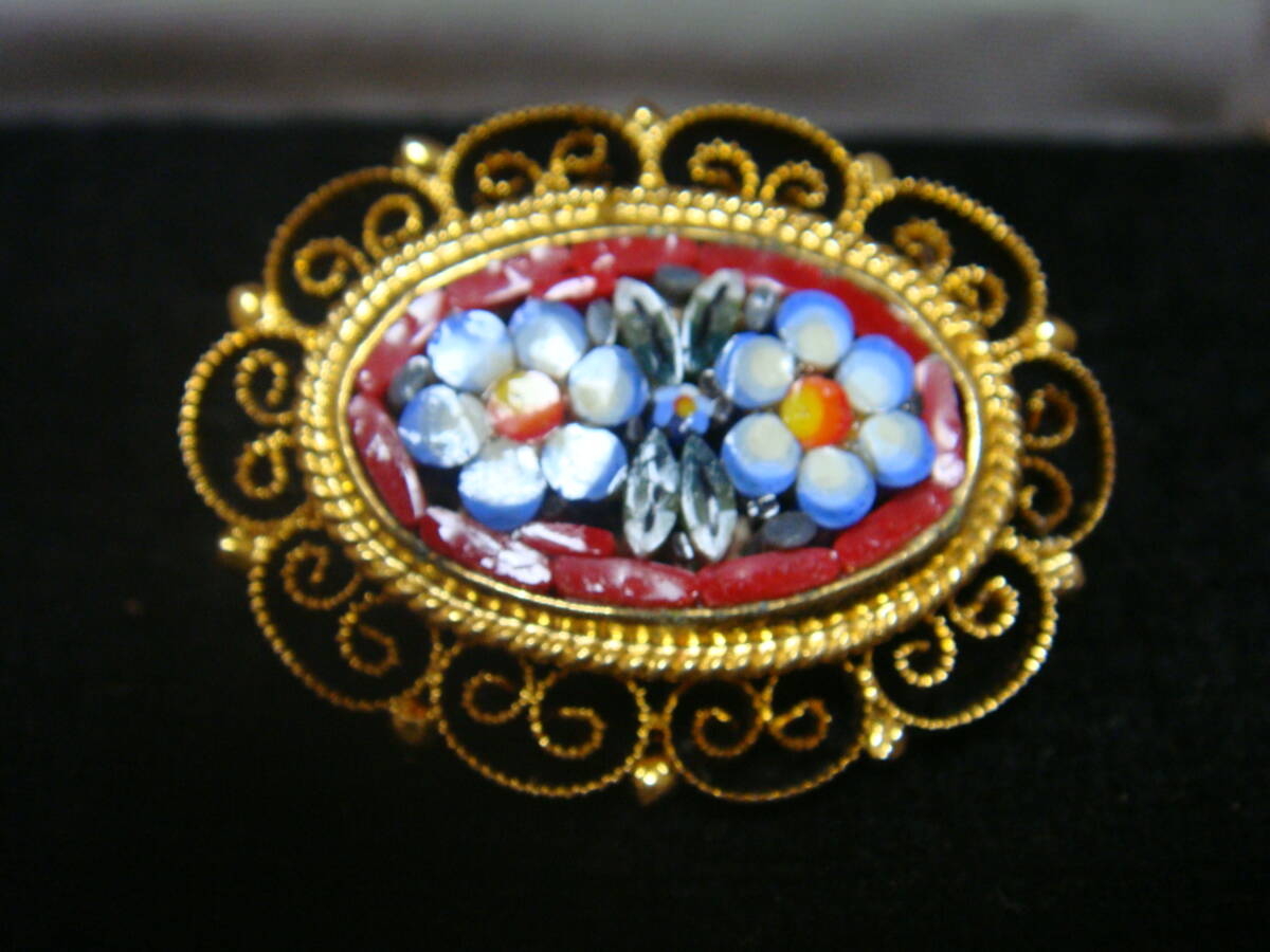 - ◆アンティーク ヴィンテージ ローマンモザイク マイクロモザイク ブローチ◆
