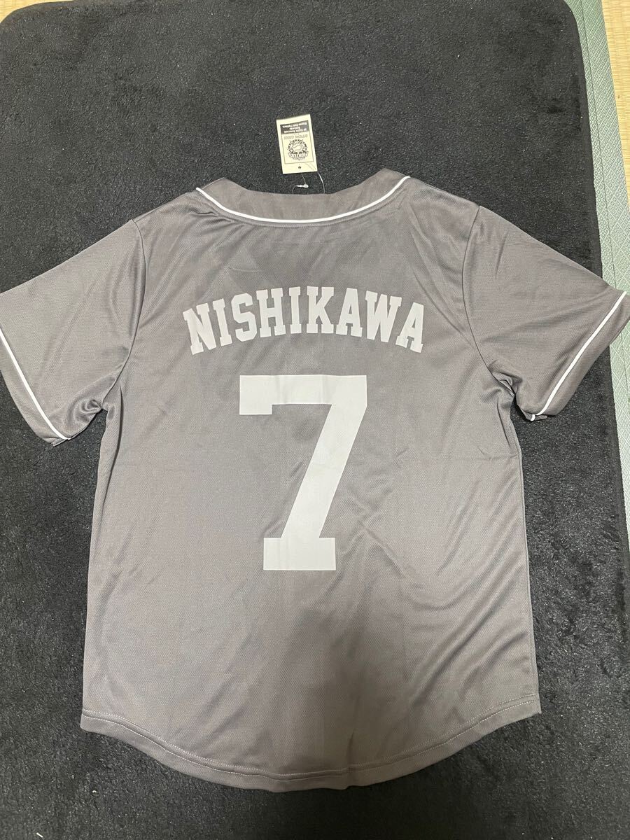 > 即決 送料無料 新品同様タグ付き 北海道日本ハムファイターズ 日ハム 西川遥輝 ベースボールシャツ プリント グレー 灰色