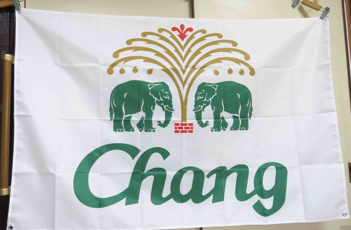 > 『特大A』白緑■激熱 双象デザイン 激渋 ■ビア・チャーンChang Beerタイ フラッグ 旗 バナー 広告 宣伝『部屋 倉庫 店舗 内装 DIY』