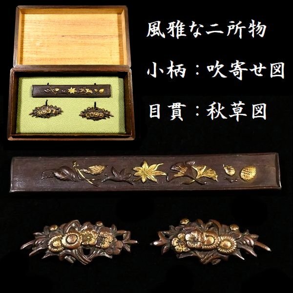 > 【 恵 #1511 】 風雅な二所物 秋を感じさせる細工の小柄・目貫のセット 小柄:吹寄せ図 目貫:秋草図 検:鍔/縁頭/切羽/刀剣/刀装具