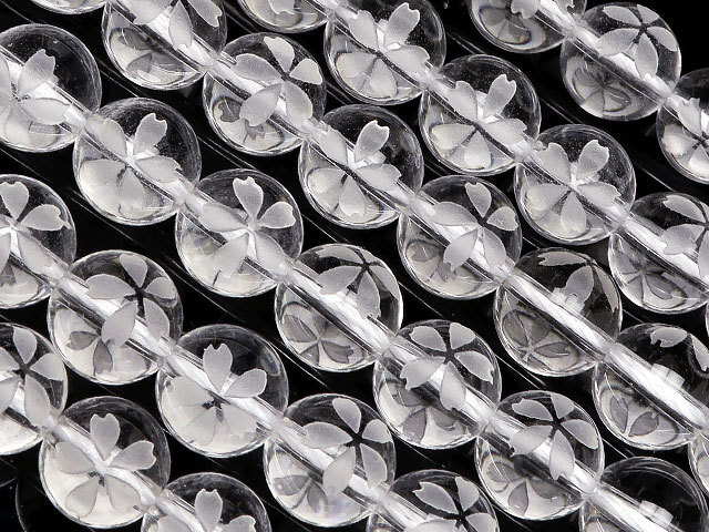 - 天然水晶 クリスタルクォーツ 桜 彫刻 丸玉 8mm【1連販売】 / 2-33 CQ8M
