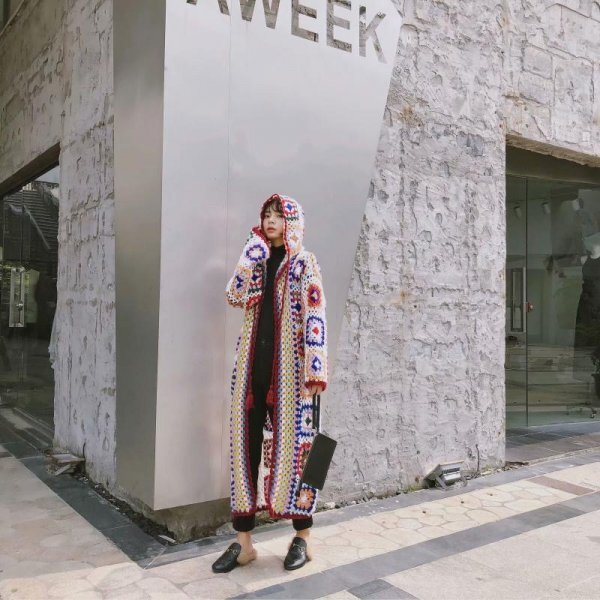 - yh セール ニット セーター ロングカーディガン フード コート アウターパッチワーク風 フリーサイズ 暖かい 柔らかい 肌触り抜群